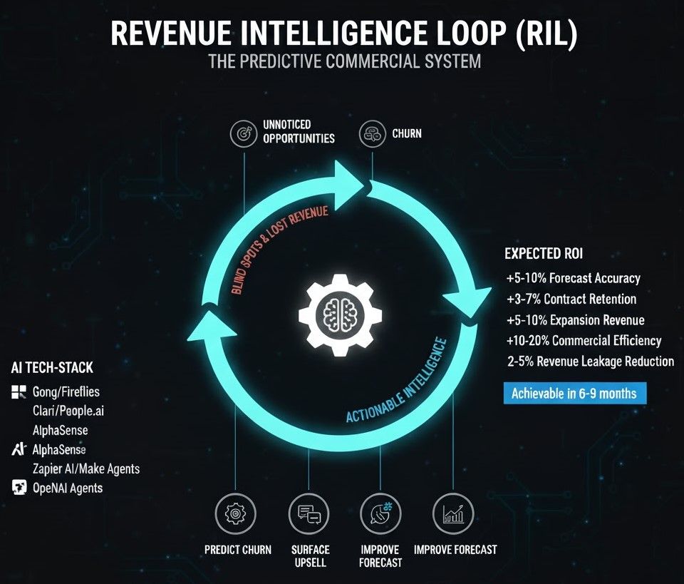 REVENUE INTELLIGENCE LOOP (RIL); The System That Turns Your Commercial Engine into a Predictive Machine. (Oil & Gas & Energy SMEs, as a sample industry) If your revenue engine can’t detect churn, uncover upsell potential, and forecast with clarity… you’re leaving money on the table every month. This is episode #9 of 12 of the roadmap to the “REVENUE ENGINE ARCHITURE MAP” posts series, Revenue Intelligence Loop (RIL) in Oil & Gas & Energy as a sample industry. Realty check: Revenue issues in SMEs rarely come from sales execution. They come from blind spots: - Key accounts drift quietly - Expansion opportunities die unnoticed - Forecasts swing on guesses, not facts - Managers report confidence, not truth - Deals stall because insights arrive too late - Every month, small lapses compound into thousands or hundreds of thousands in lost revenue. The companies that outperform run a Revenue Intelligence Loop (RIL), a lightweight, predictive commercial system that gives real-time clarity. What the system does: RIL turns calls, emails, meetings, and market signals into actionable revenue intelligence. No whispering noise. No gut-feel forecasts. Just truth. - Predict Churn: Spot accounts at risk weeks in advance - Surface Upsell: Reveal expansion potential without extra staff - Improve Forecast Accuracy: Know which deals will close and when - Optimize Team Effort: Focus resources on highest-impact actions AI Tech-stack (example tools): - Gong / Fireflies → Analyze conversations - Clari / People.ai / Einstein GPT → Score deals & accounts - AlphaSense / Market Intelligence → Detect market shifts - Zapier AI / Make Agents → Automate next-step actions - OpenAI Agents → Integrate insights across systems Expected ROI for SMEs ($10M–$100M revenue): - Forecast accuracy +5–10% - Contract retention +3–7% - Expansion revenue +5–10% without extra staff - Commercial efficiency +10–20% - Revenue leakage reduction 2–5% Not flashy multiples- just measurable, cash-impacting results achievable in 6–9 months. The missing principle: If you’re still relying on memory, meetings, and intuition, you’re managing avoidable risk. Intelligence is cheap, predictable, and scalable; even for small teams. 💬 Owners, Chairmen, Founders, CEOs, and Investors: I design commercial clarity systems. If you want to prevent revenue leakage, grow accounts systematically, forecast with confidence, and run a commercial engine that doesn’t burn cash… DM me. I’ll show how a Revenue Intelligence Loop would work in your business, and the realistic ROI you can achieve fast. 🔗 Follow me to get the deep-dive post for each of these 12 steps of the roadmap and more: frameworks, tools, and live deployment blueprints. #RevenueArchitecture #RevenueIntelligence #Growth #CommercialExcellence #OilAndGasSME #CEOPlaybook #ForecastAccuracy #AIinBusiness #BusinessOptimization